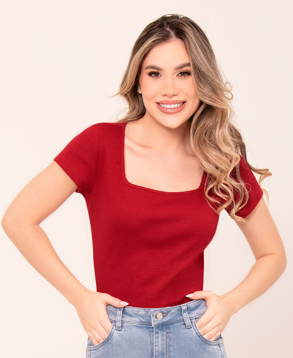 Camiseta confeccionada en tejido de punto de algodón suave al tacto, con silueta recta y ajuste clásico. Presenta cuello cuadrado, mangas cortas, que aporta un toque femenino y moderno. Su material liviano ofrece comodidad y frescura para uso diario..