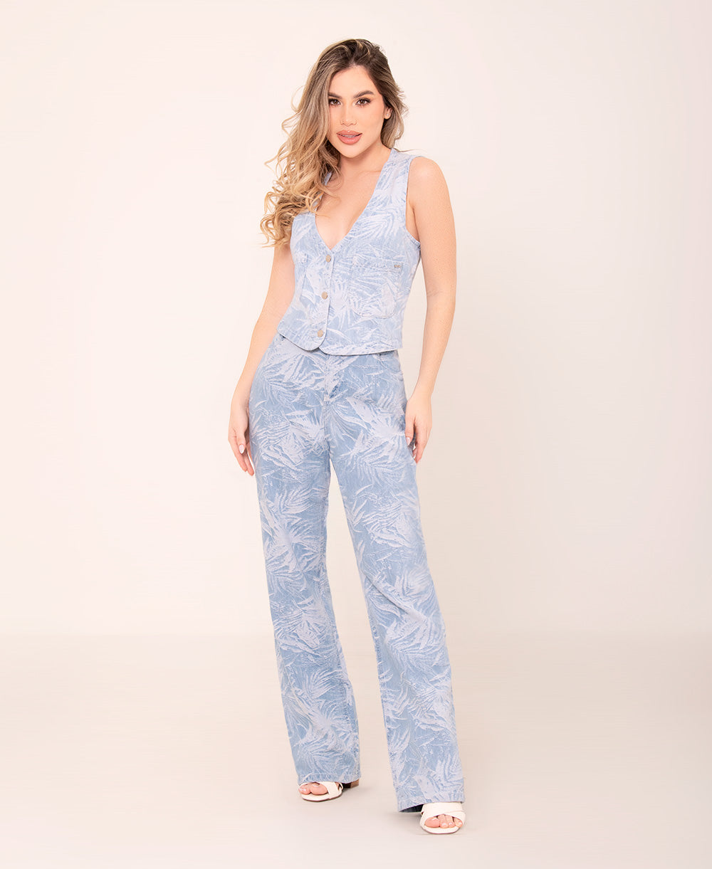 Chaleco en tono azul claro con delicado estampado vegetal en relieve, ideal para darle un toque fresco y moderno a cualquier look. Su diseño con escote en “V” y botones frontales metálicos aporta un aire sofisticado y versátil, mientras que los bolsillos delanteros añaden un detalle funcional y estilizado. Perfecto para combinar con jeans, shorts o pantalones de lino y crear outfits llenos de estilo y personalidad.