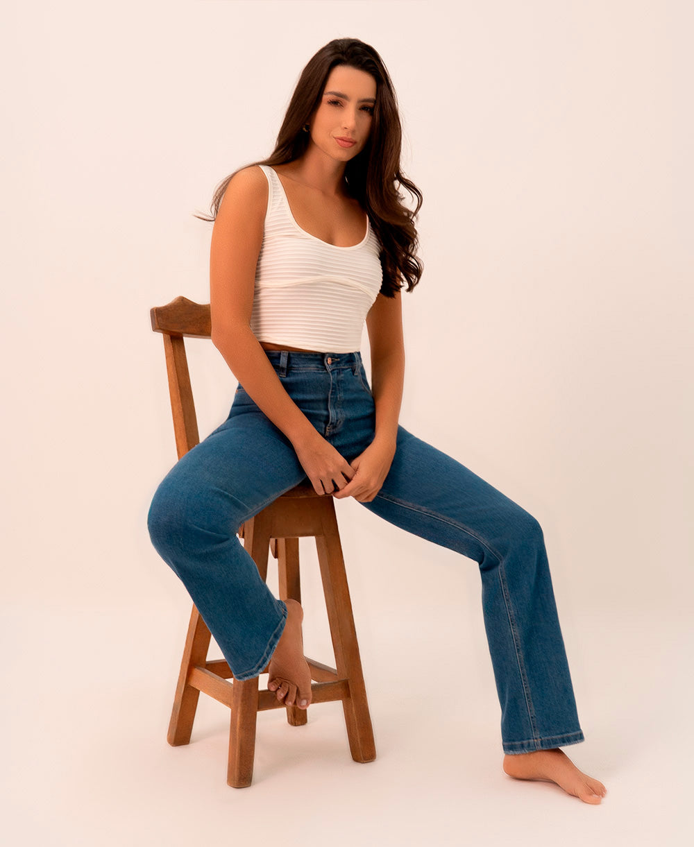 El Jean Clásico combina estilo y comodidad en una silueta atemporal. Su corte recto estiliza la figura y ofrece libertad de movimiento, ideal para looks casuales o más elegantes. Con un tono azul medio y cintura alta, se convierte en el aliado perfecto para crear outfits sencillos, modernos y siempre en tendencia.