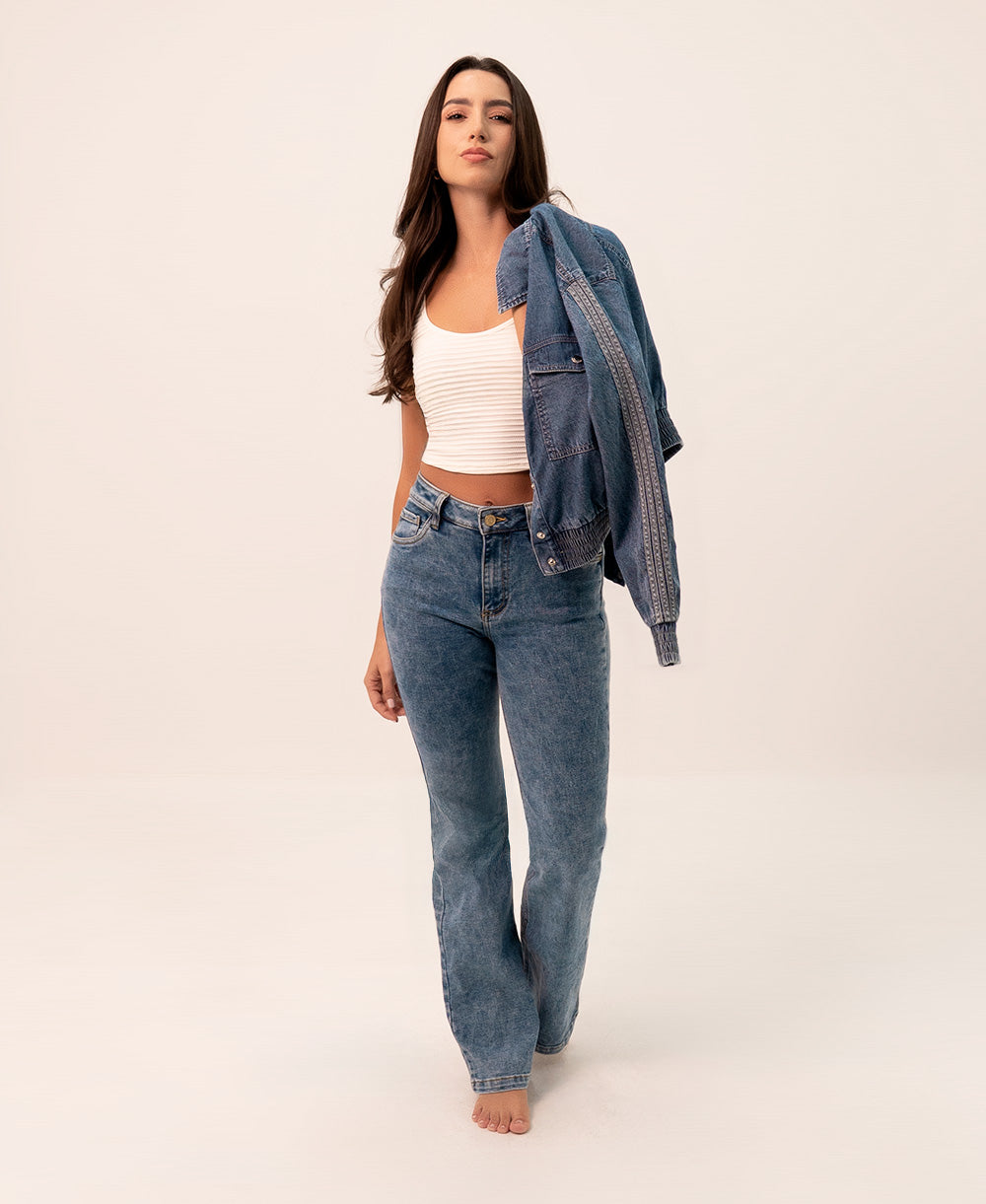 El Jean Clásico Vintage es una prenda esencial que combina confort y estilo atemporal. Su silueta recta y tiro alto realzan la figura con un ajuste favorecedor, mientras su tono azul medio desgastado le da un toque retro y moderno a la vez. Ideal para crear looks versátiles, desde los más relajados hasta los más elegantes. Un básico infaltable en tu clóset.