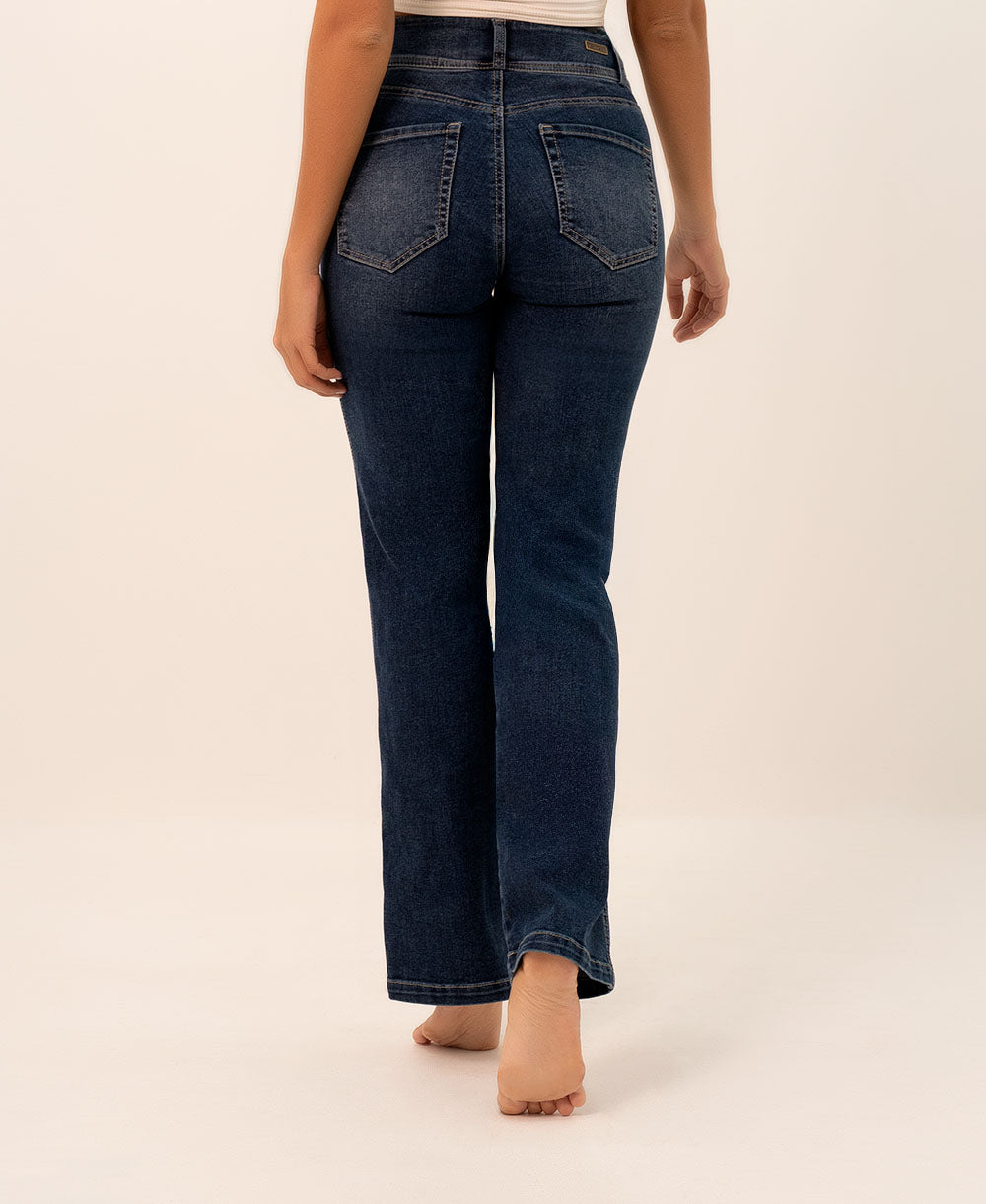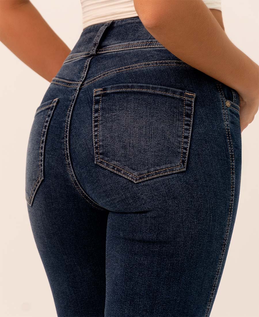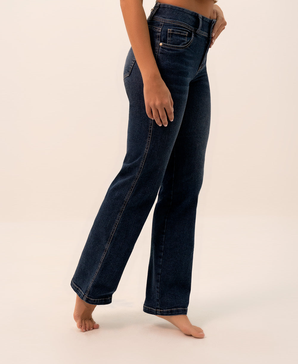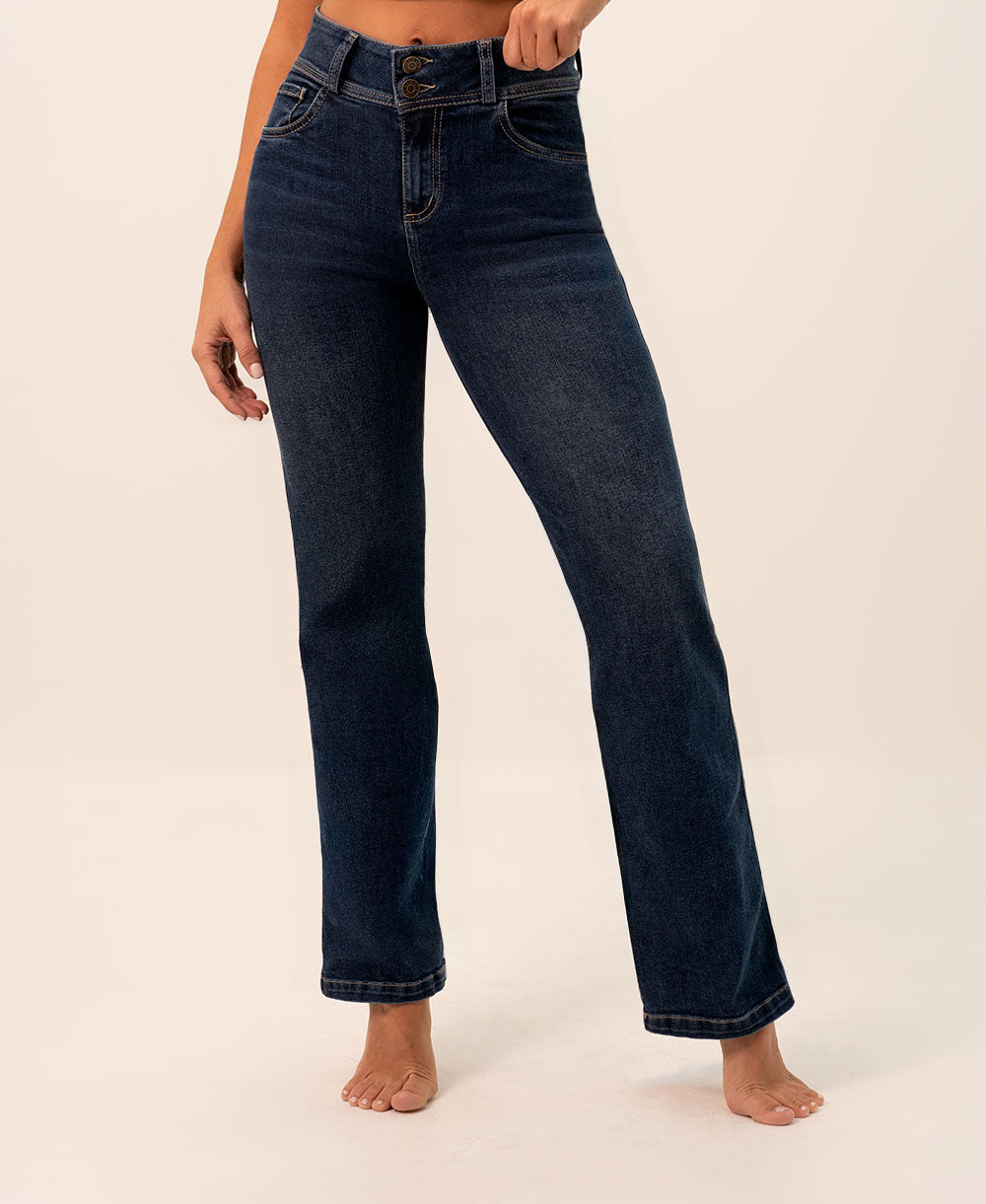 El Jean Recto Doble Botón redefine el clásico con un toque sofisticado. Su tiro alto con doble botón realza la cintura y aporta soporte, mientras su silueta recta estiliza las piernas y alarga la figura. Perfecto para crear looks elegantes o casuales, es una prenda versátil que nunca pasa de moda.