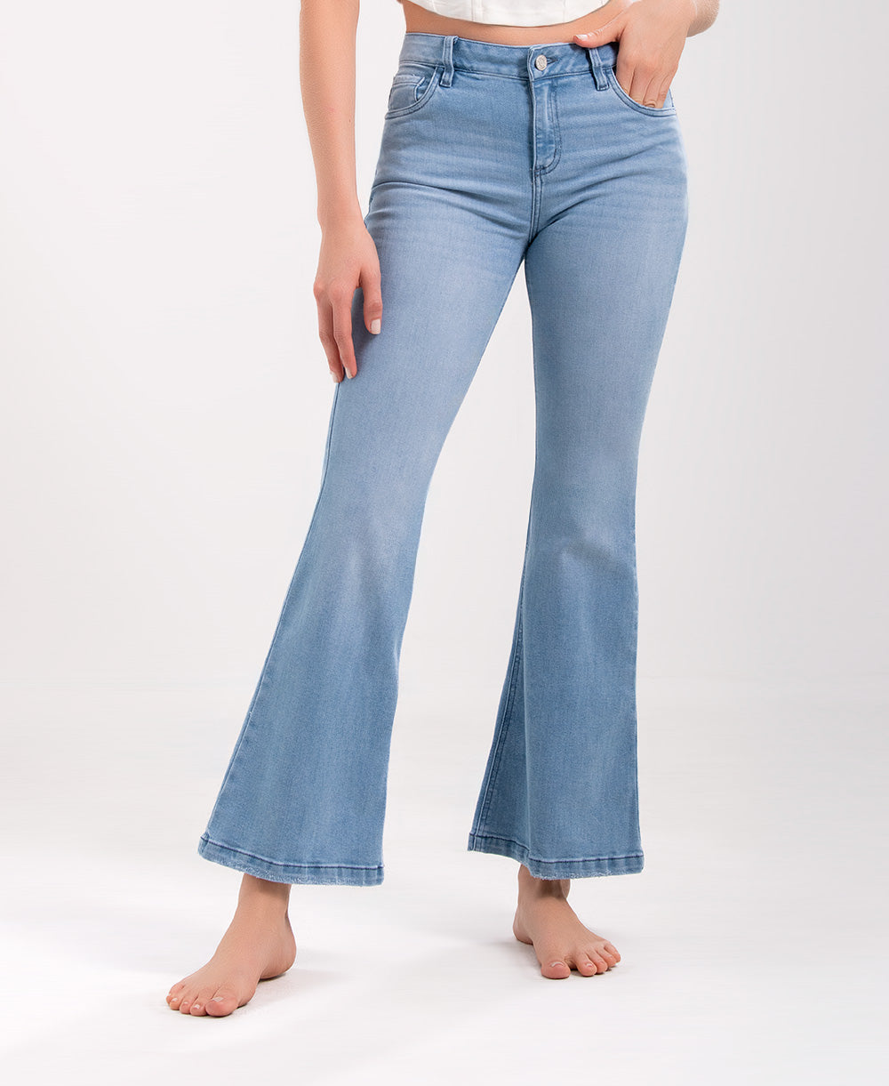 Jean Flare tiro medio azul claro