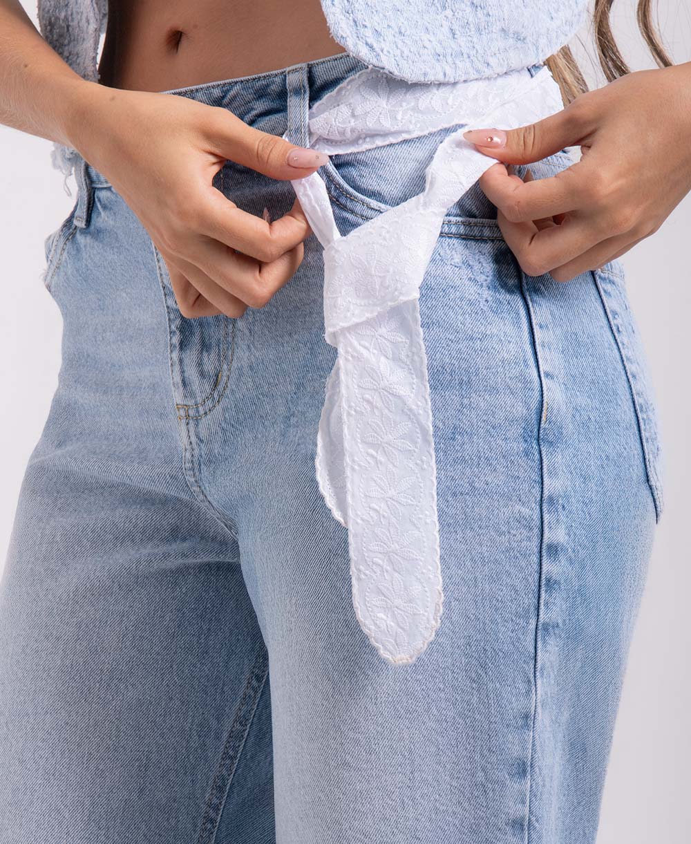 Jean Momfit tiro alto con lazo decorativo