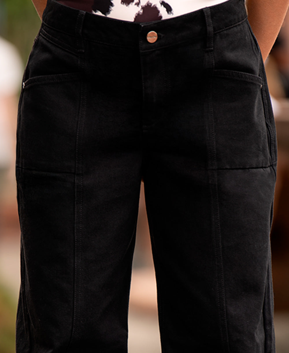 Jean straight negro, de tiro alto y corte recto que alarga la silueta y resalta la figura con elegancia. Su diseño con bolsillos delanteros amplios aporta un toque utilitario, ideal para crear looks urbanos y versátiles. Perfecto para combinar con tops ajustados o blusas estructuradas y lograr un estilo sofisticado sin esfuerzo. No incluye accesorio.