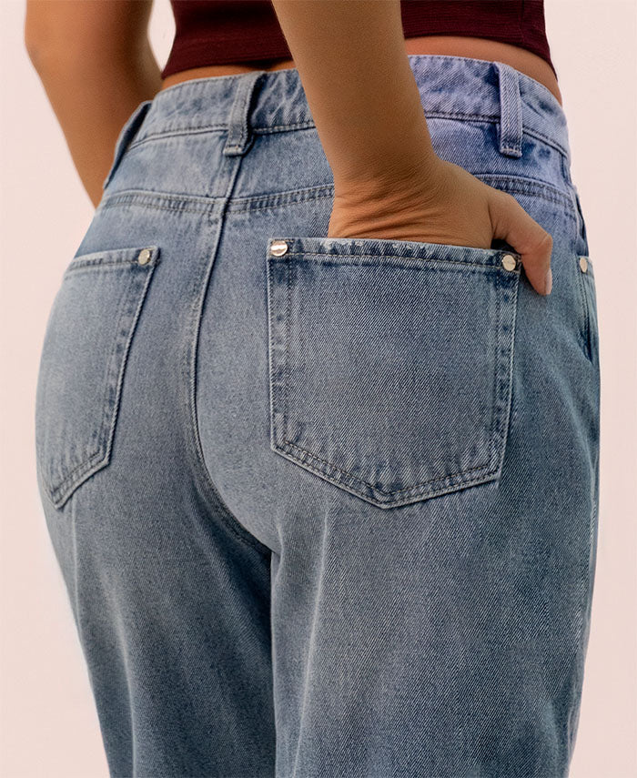 Jean Straight de tiro alto confeccionado en denim suave y ligeramente desgastado. Su silueta amplia aporta movimiento y un look moderno, mientras el ajuste en cintura realza la figura. Un básico versátil que combina comodidad y estilo para cualquier ocasión.