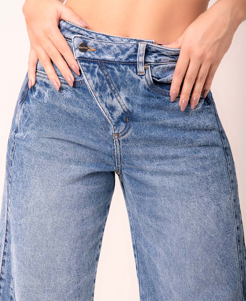 El Jean Wide Leg Asimétrico combina estilo y comodidad con un toque moderno. Su diseño de tiro alto y pretina cruzada crea un efecto visual favorecedor que estiliza la cintura. La silueta amplia y fluida aporta un look relajado, ideal para outfits casuales o más sofisticados. Confeccionado en denim suave y resistente, este jean se adapta a tu ritmo sin perder forma ni estilo. Perfecto para usar con tops ajustados o camisas sueltas, logrando un equilibrio entre tendencia y comodidad.
