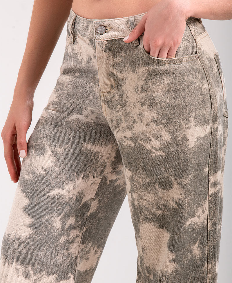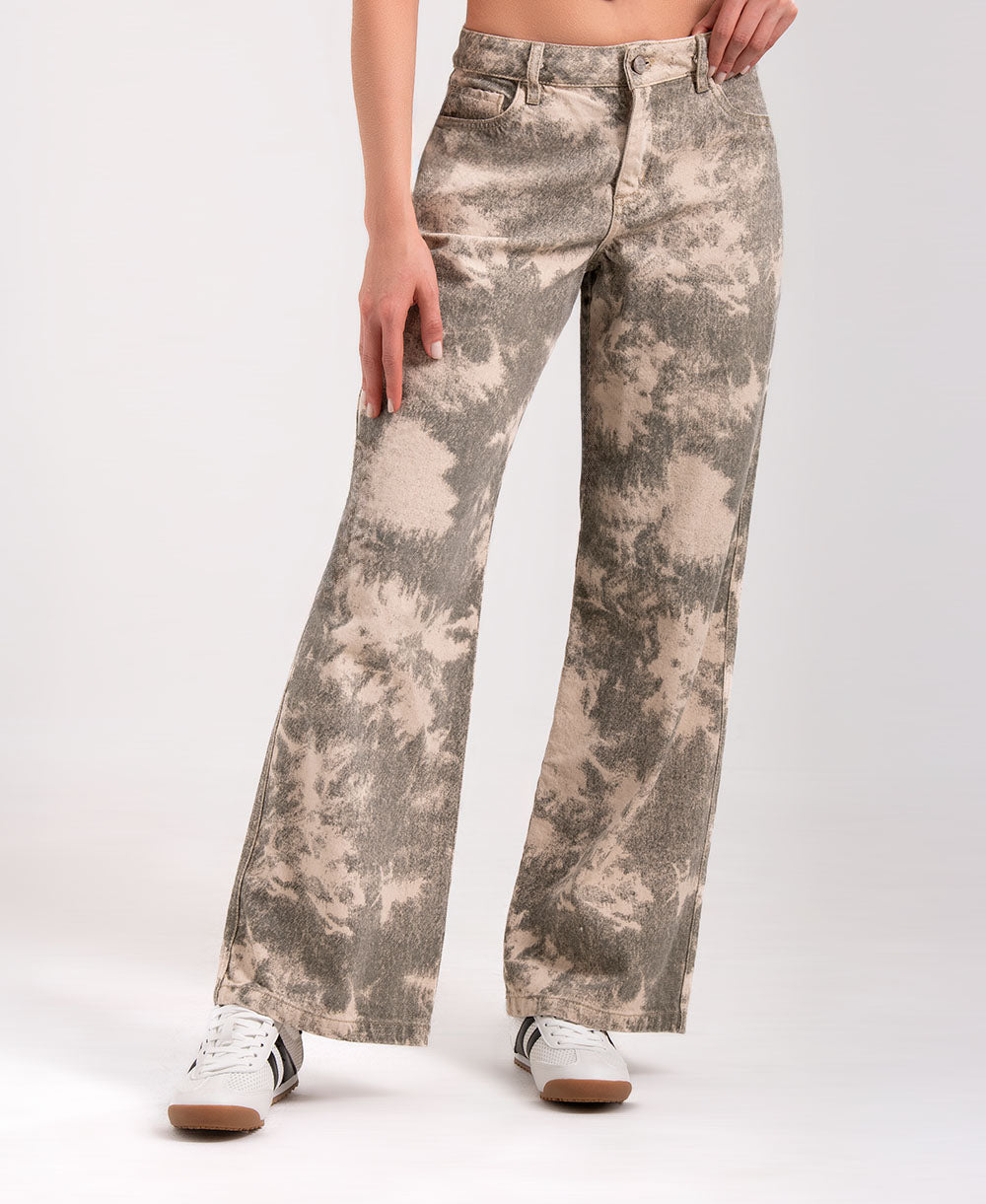 Jean wide leg de tiro medio con un acabado efecto tie-dye en tonos beige y verde, que aporta un look moderno y auténtico. Su silueta amplia desde la cadera hasta el bajo brinda comodidad y movimiento, mientras que el denim suave y de tacto cómodo lo convierte en una prenda ideal para outfits casuales con personalidad. Perfecto para combinar con tops básicos y tenis para un estilo relajado y lleno de actitud.