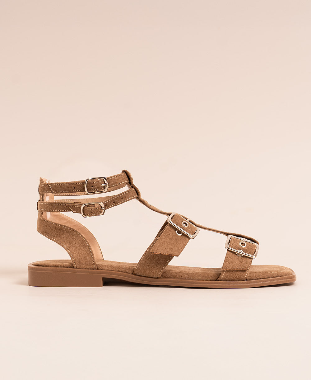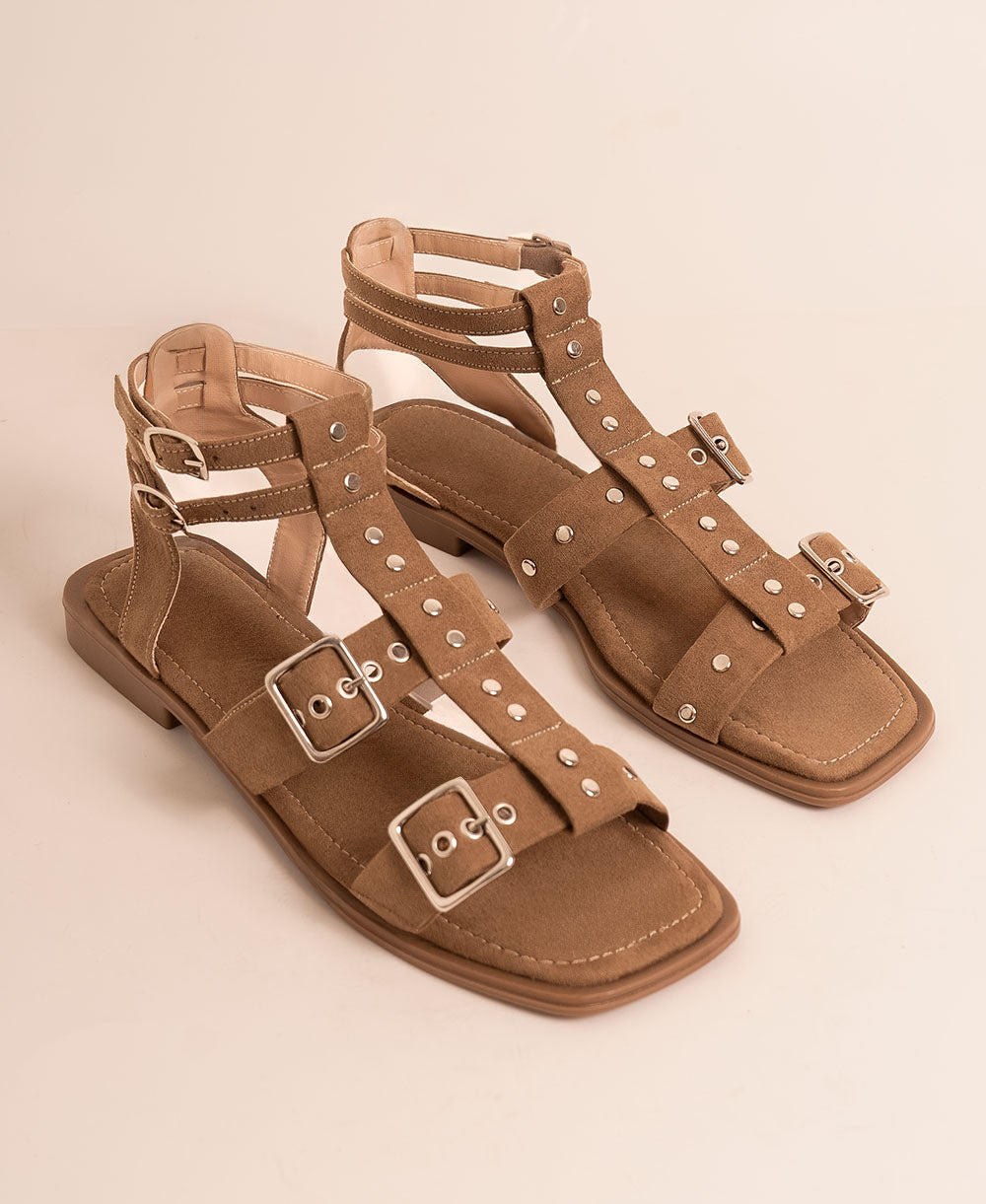 Eleva tus looks de verano con un estilo lleno de actitud. Las Sandalias Verona cuentan con diseño tipo gladiadora moderna, elaboradas en material tipo nobuck suave al tacto, con tiras ajustables y hebillas metálicas que aportan seguridad y un toque edgy a cualquier outfit. Su punta cuadrada, plantilla acolchada y suela plana brindan comodidad para usar todos los días, desde looks casuales hasta combinaciones más chic.